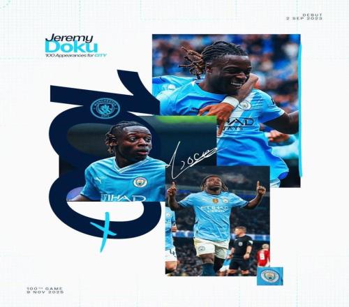 此役主場(chǎng)對(duì)陣?yán)锲?,多?kù)首發(fā)出戰(zhàn),這位比利時(shí)邊鋒迎來(lái)曼城生涯各項(xiàng)賽事第100次出場(chǎng)。