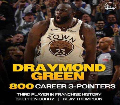 追夢達(dá)成生涯800記三分里程碑,成為勇士隊(duì)史第3人,前兩位是庫里與克萊。