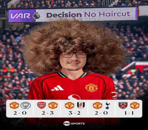 英超第26輪,曼聯(lián)客場1-1戰(zhàn)平西漢姆聯(lián),無緣英超五連勝,這也讓立志等到曼聯(lián)五連勝就剪頭發(fā)的球迷“蓄發(fā)哥”愿望再次落空。