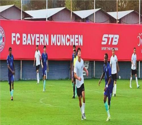 圖為遼寧鐵人隊(白色球衣)與泰國農(nóng)業(yè)大學(xué)隊進(jìn)行熱身賽。 遼寧鐵人足球俱樂部供圖