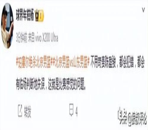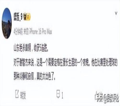 媒體人“盛哲”發(fā)文點(diǎn)評:山東絕殺首鋼,收獲5連勝。