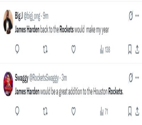 哈登可能重返休斯頓的消息出爐后,火箭球迷們紛紛發(fā)聲:火箭急需一名控球后衛(wèi),哈登即將被交易的消息傳出,我們有機(jī)會(huì)看到杜蘭特、哈登第三次攜手,如果這兩人在休斯頓重聚,我們有希望拿到總冠軍。