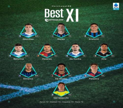 意甲第22輪最佳陣容:迪馬爾科、德溫特在列,科莫三人入選